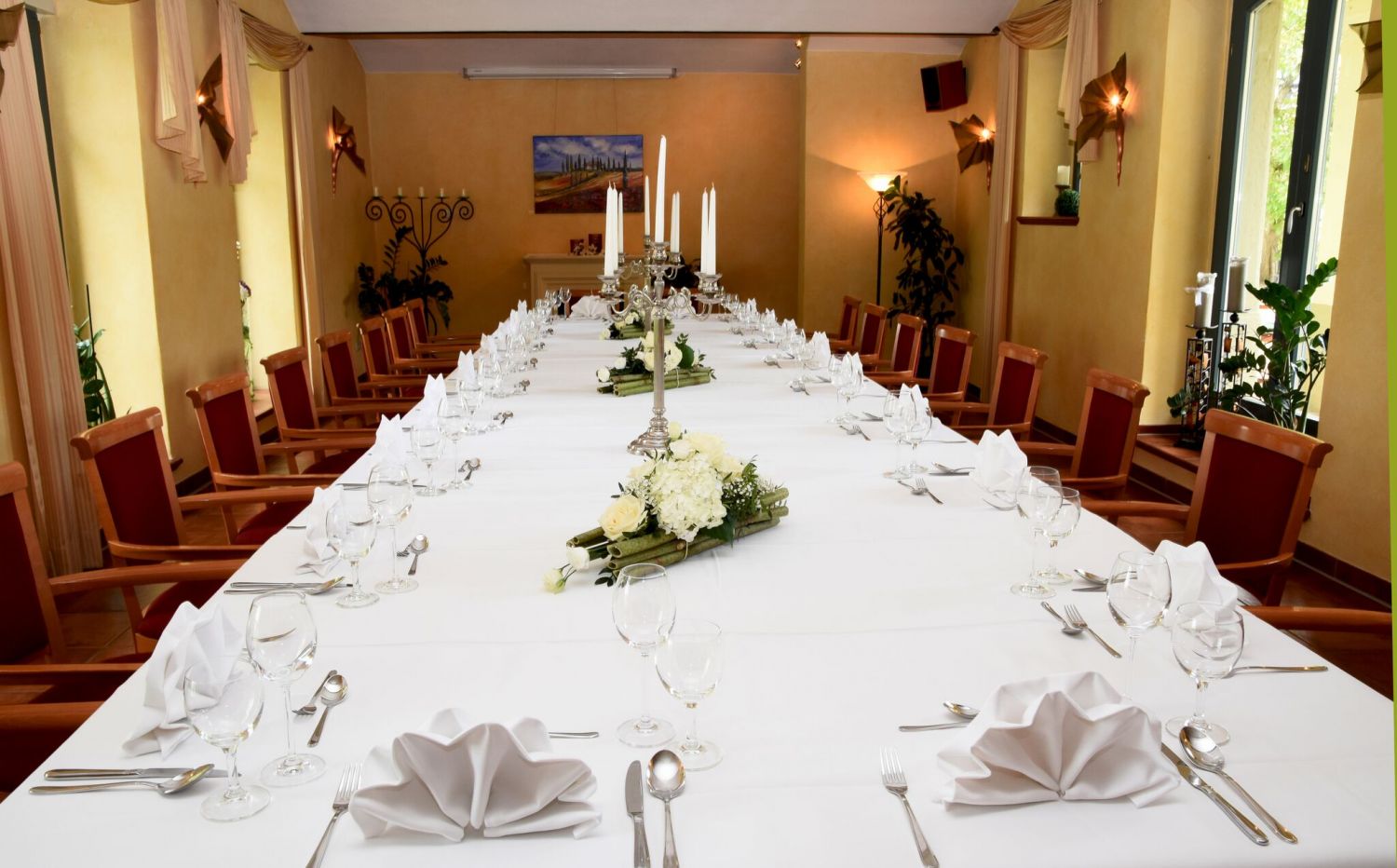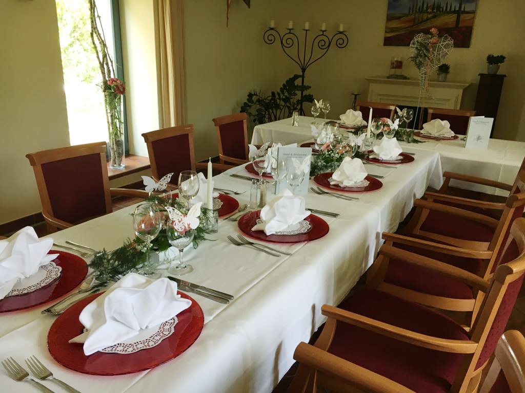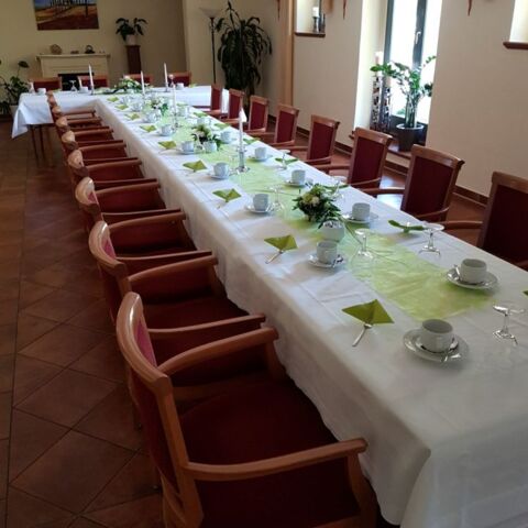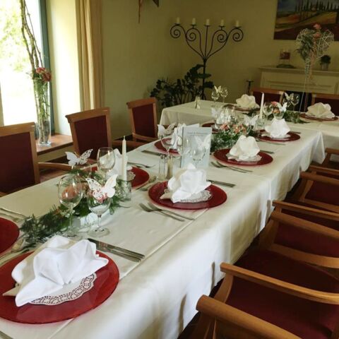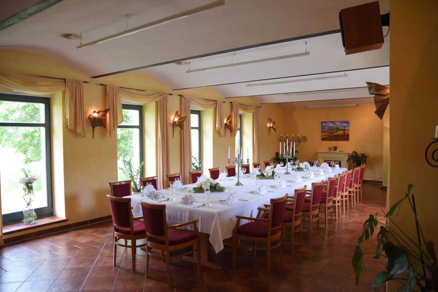 Es besteht die Möglichkeit einer kleine Tanzfläche und Platz für eine musikalischer Umrahmung. Zur Ausstattung gehören eine kleine integrierte Musikanlage, Leinwand, WLAN-Empfang und die Möglichkeit zur Verdunklung des Raumes.