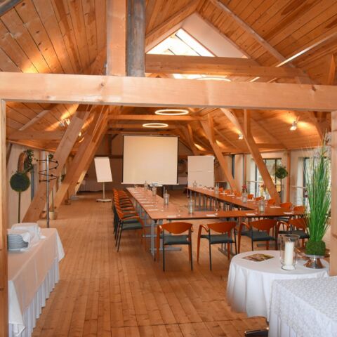 Zur Ausstattung gehören eine Leinwand, WLAN-Empfang und das Panorama-Dachfenster für bestes Tageslicht. Für benötigte Tagungstechnik und Gruppenarebiten stehen Ihnen ausreichend Platz zur Verfügung.