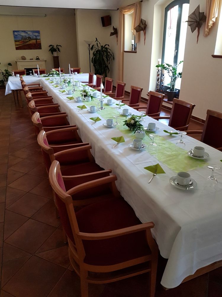 Es besteht die Möglichkeit einer kleine Tanzfläche und Platz für eine musikalischer Umrahmung. Zur Ausstattung gehören eine kleine integrierte Musikanlage, Leinwand, WLAN-Empfang und die Möglichkeit zur Verdunklung des Raumes.